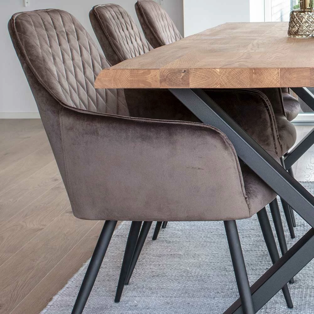 - Aus massivem Eichenholz, Samt-Webstoff und Stahl hergestellt