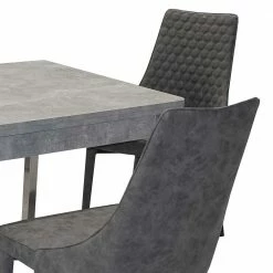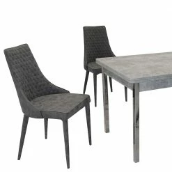- Kompakte Esszimmergrupe in Dunkelgrau, Chromfarben und Beton Optik
