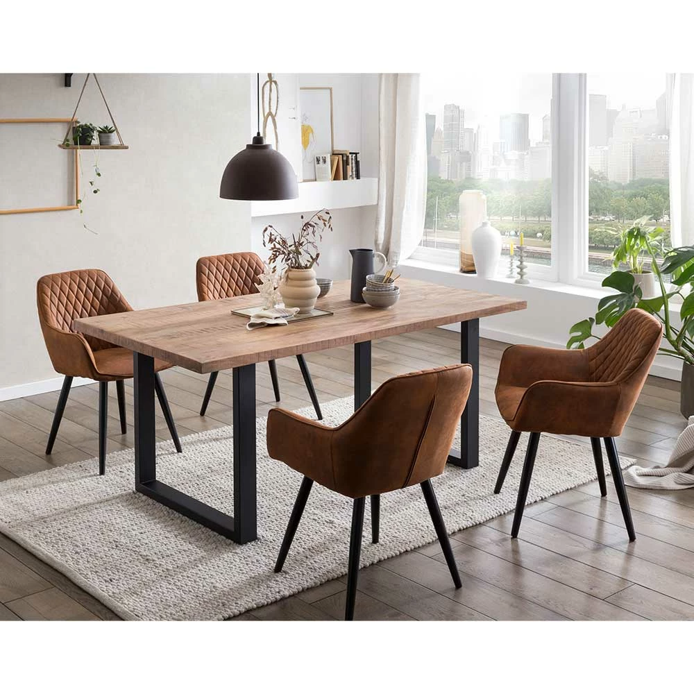 - Dynamische Sitzgruppe in Akaziefarben, Schwarz und Cognacbraun