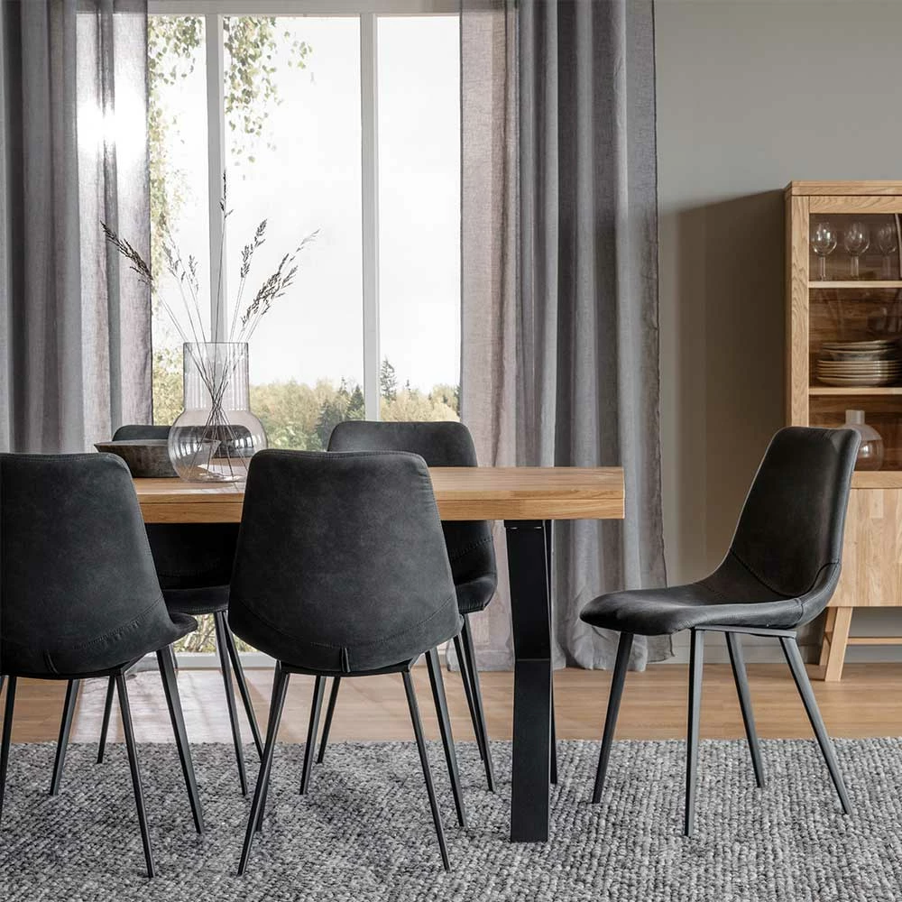 - Aus Eiche Massivholz, Metall und Microfaser hergestellt