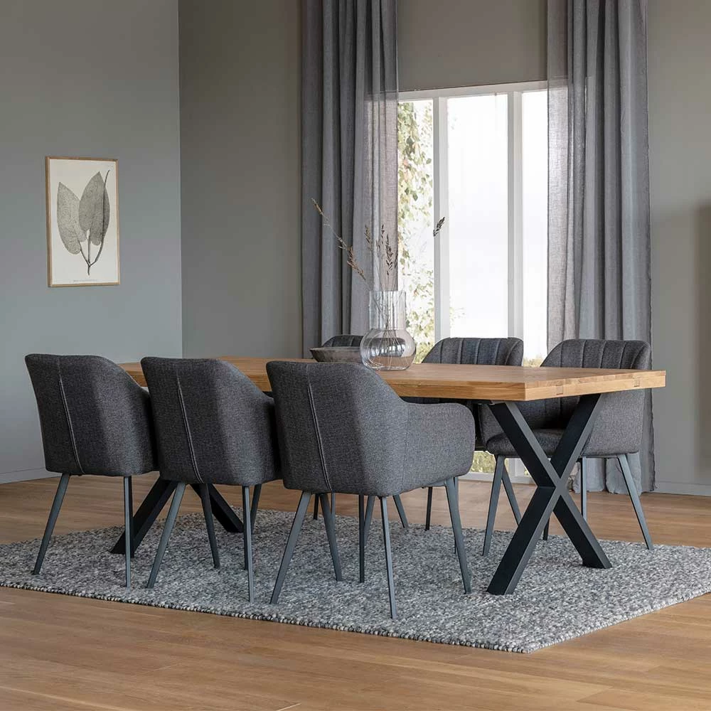- Ausdrucksstarke Essgruppe in Eichefarben, Grau und Schwarz