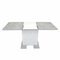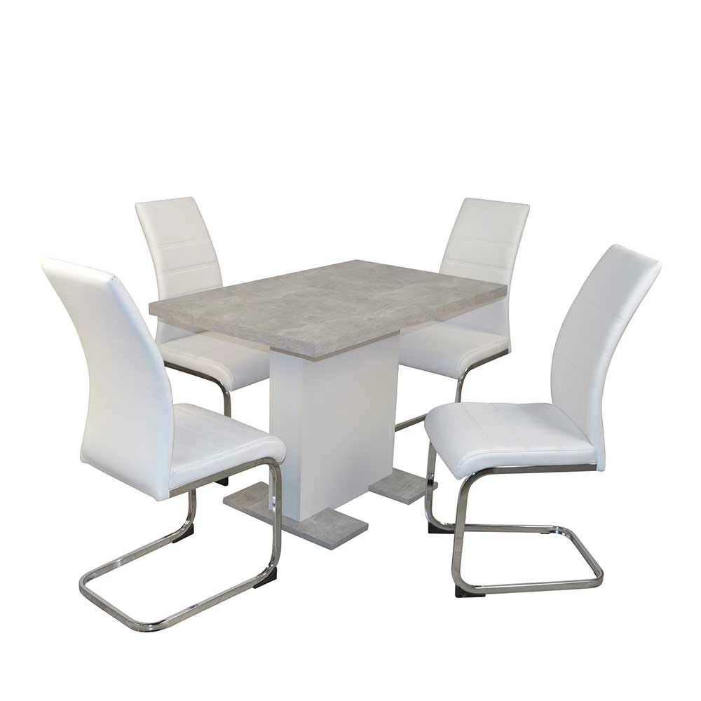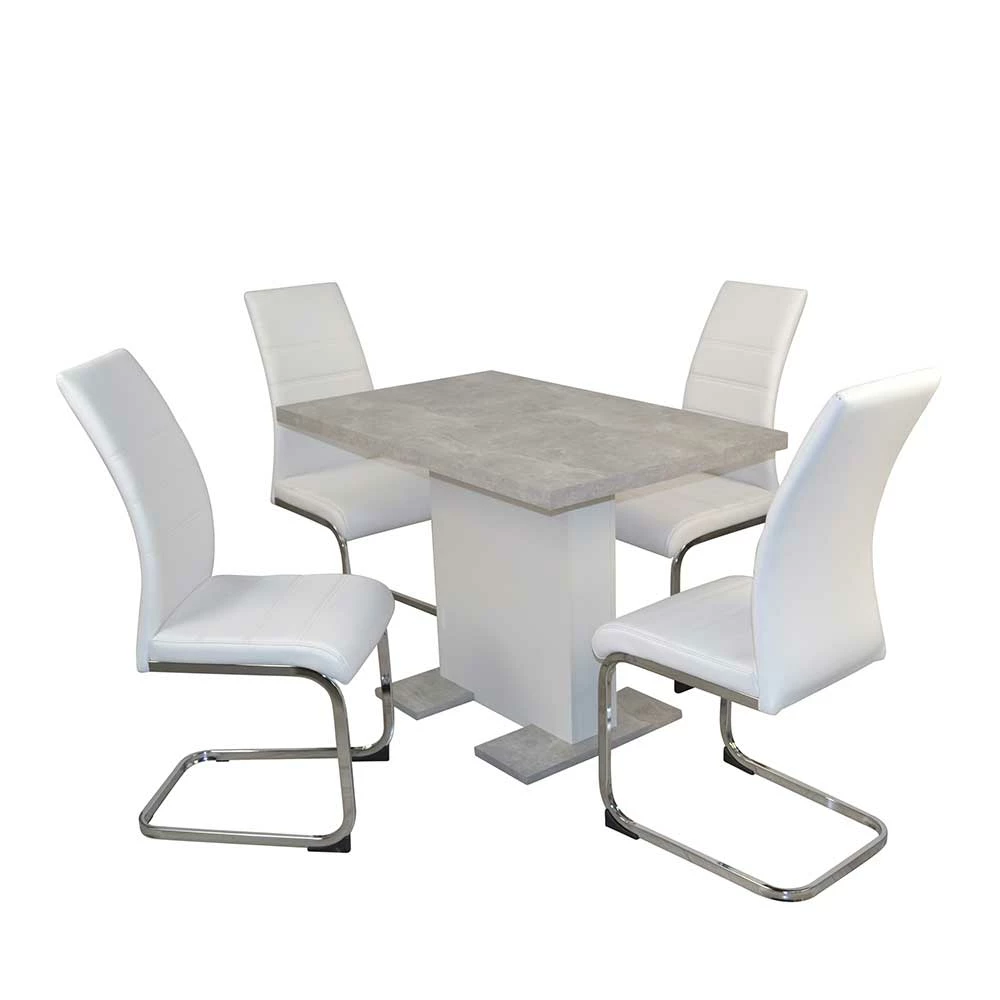 - Klasse Esstischgruppe in Weiß, Chrom und Beton Optik