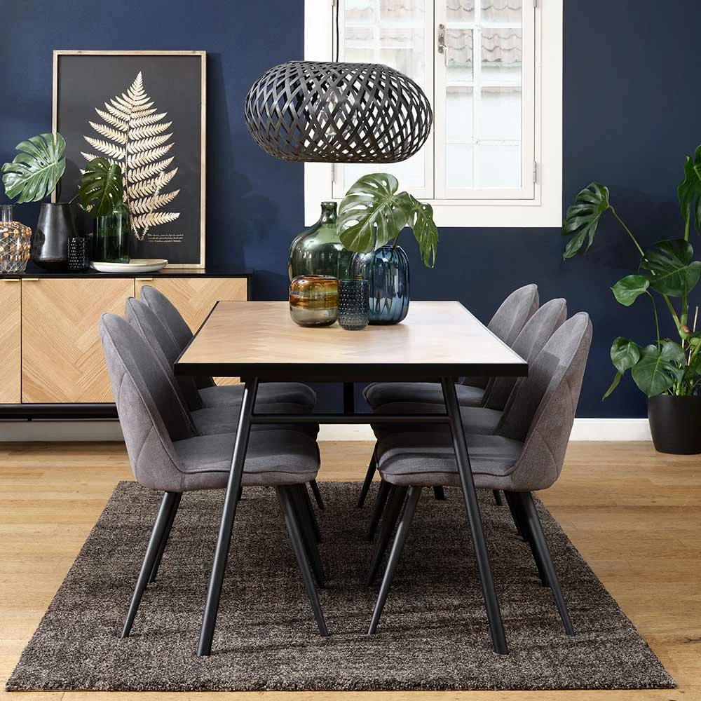 - Platten Oberfläche echtholzfurniert mit Eiche in dekorativer Fischgräten-Optik und geölt, Metall in Schwarz lackiert