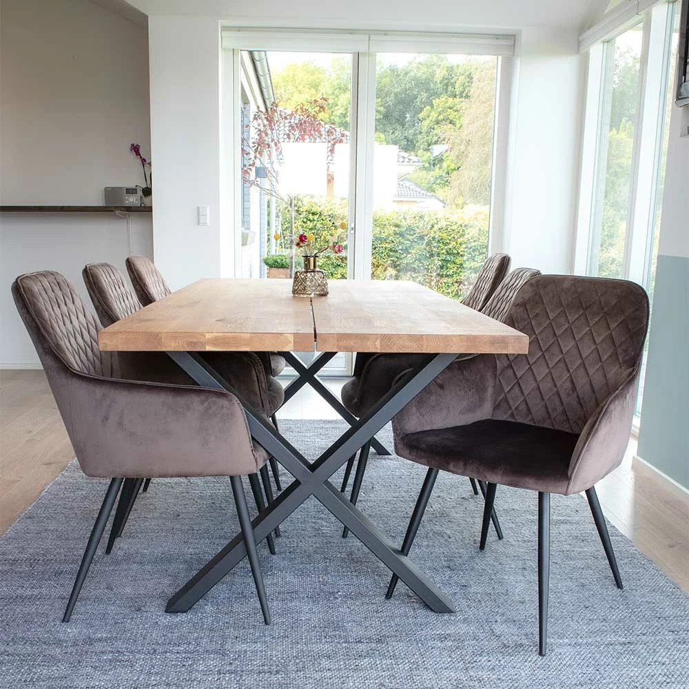 - Tischplatte aus massivem Eichenholz mit lebhafter Maserung, mittig geteilt