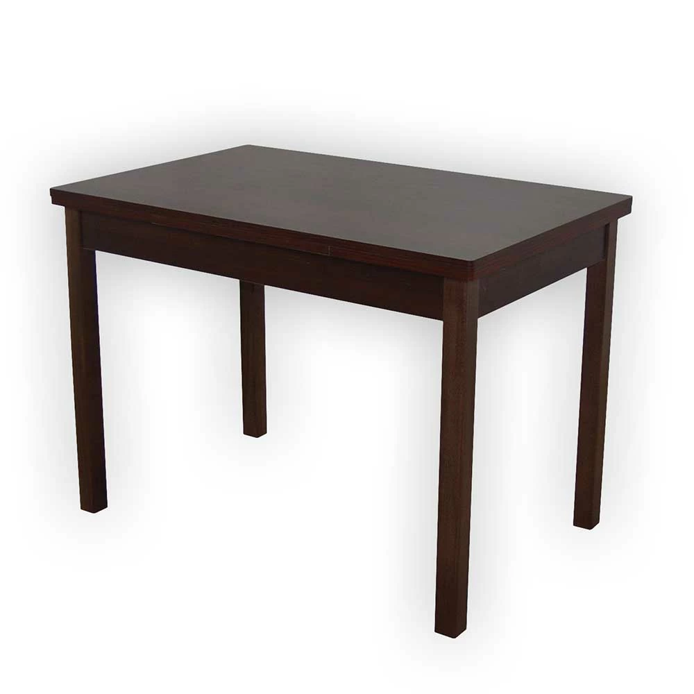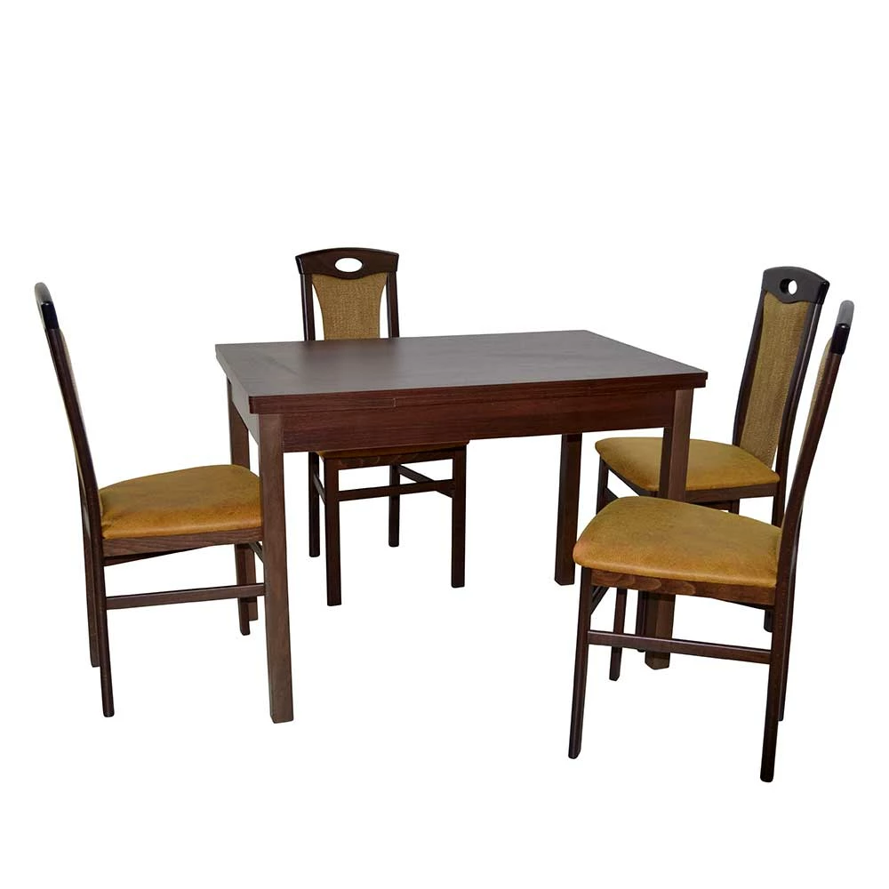 - Ansprechende Tischgruppe in Nussbaumfarben und Ockergelb