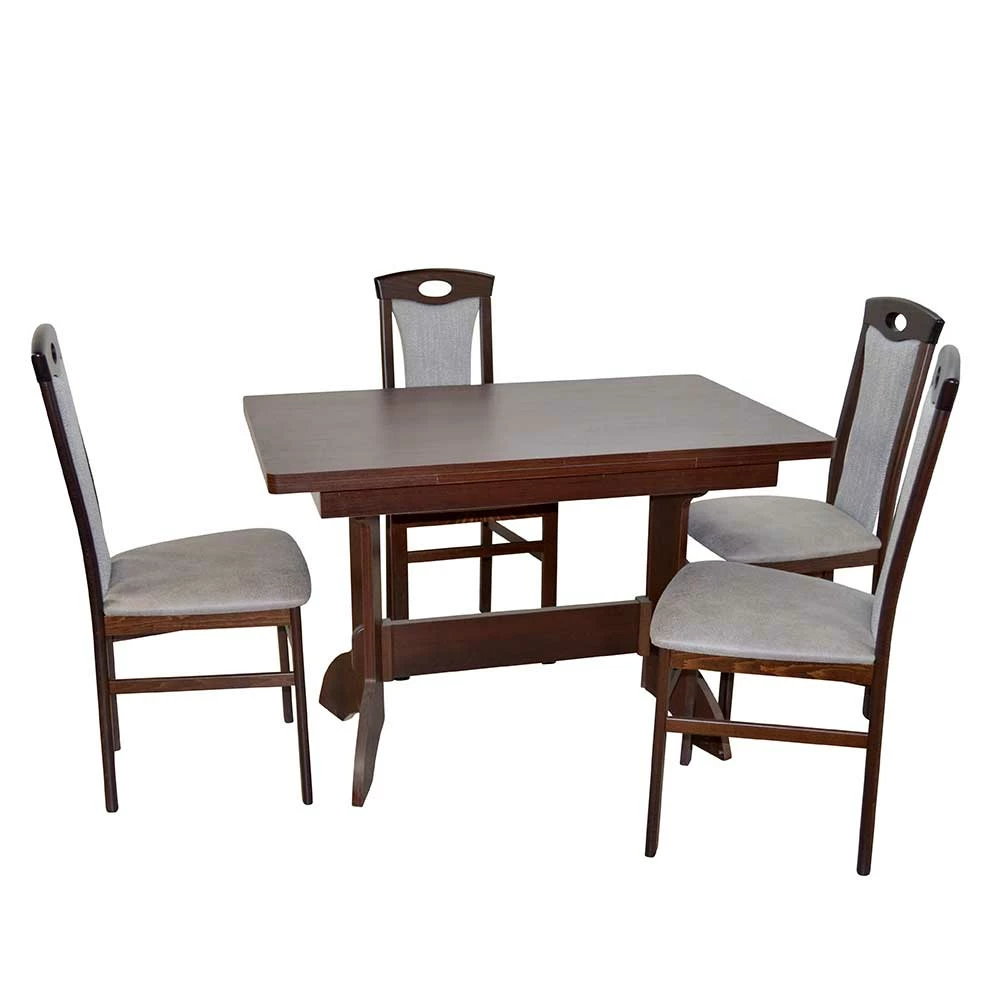 - Ansprechende Tischgruppe in Nussbaumfarben und Hellgrau