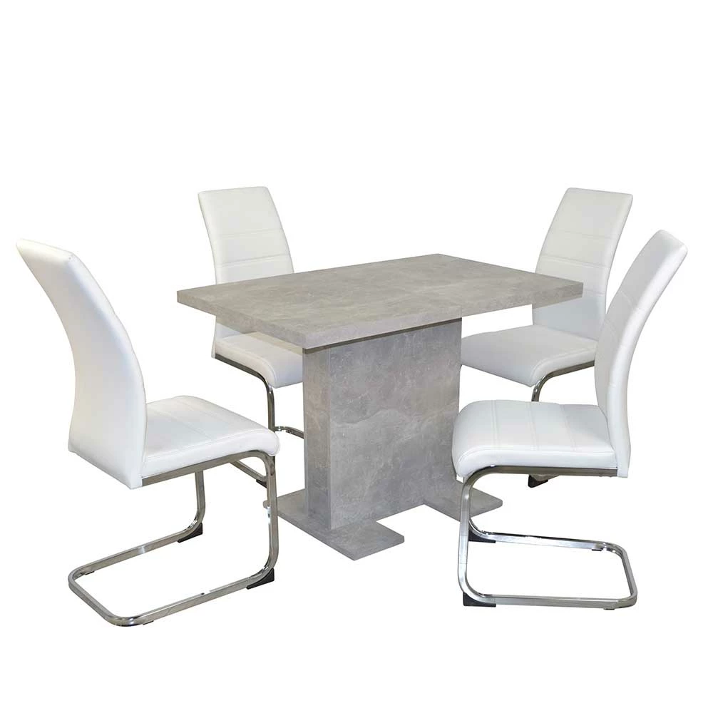 - Schicke Essgruppe in Weiß, Chromfarben und Beton Grau