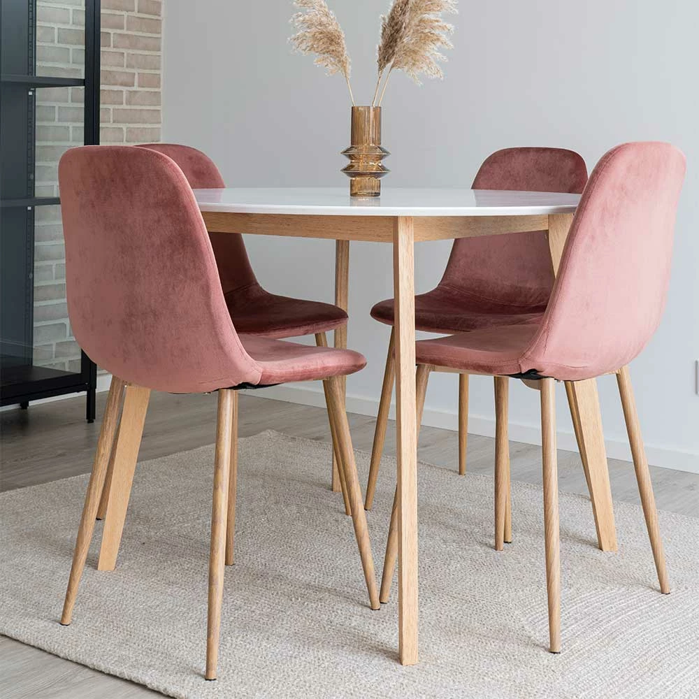 - Hübsche Essgruppe in Rosa, Weiß und Holz Naturfarben