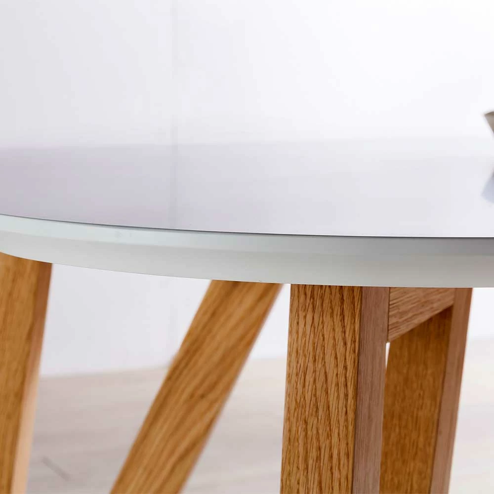 - Anspruchsvolle Esszimmergruppe in Hellgrau, Weiß und Eichefarben