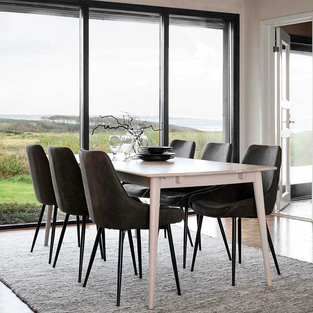 - Perfekte Essgruppe in Eiche White Wash, Dunkelgrau und Schwarz