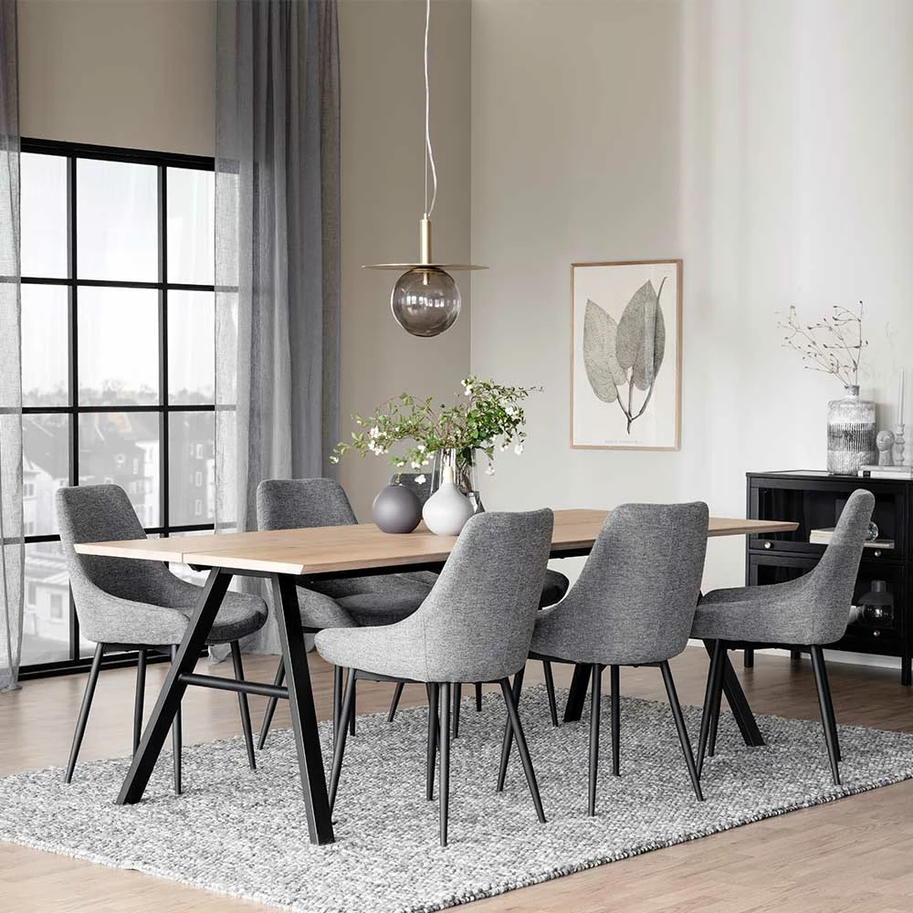 - Harmonische Sitzgruppe in Holz White Wash, Hellgrau und Schwarz