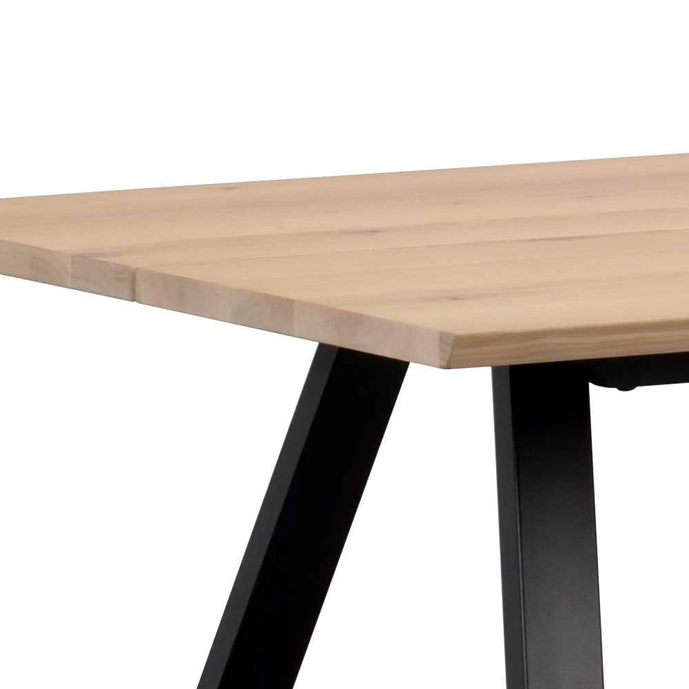 - Holzwerkstoff-Oberfläche echtholzfurniert und mit White Wash Effekt behandelt, Metall schwarz pulverbeschichtet