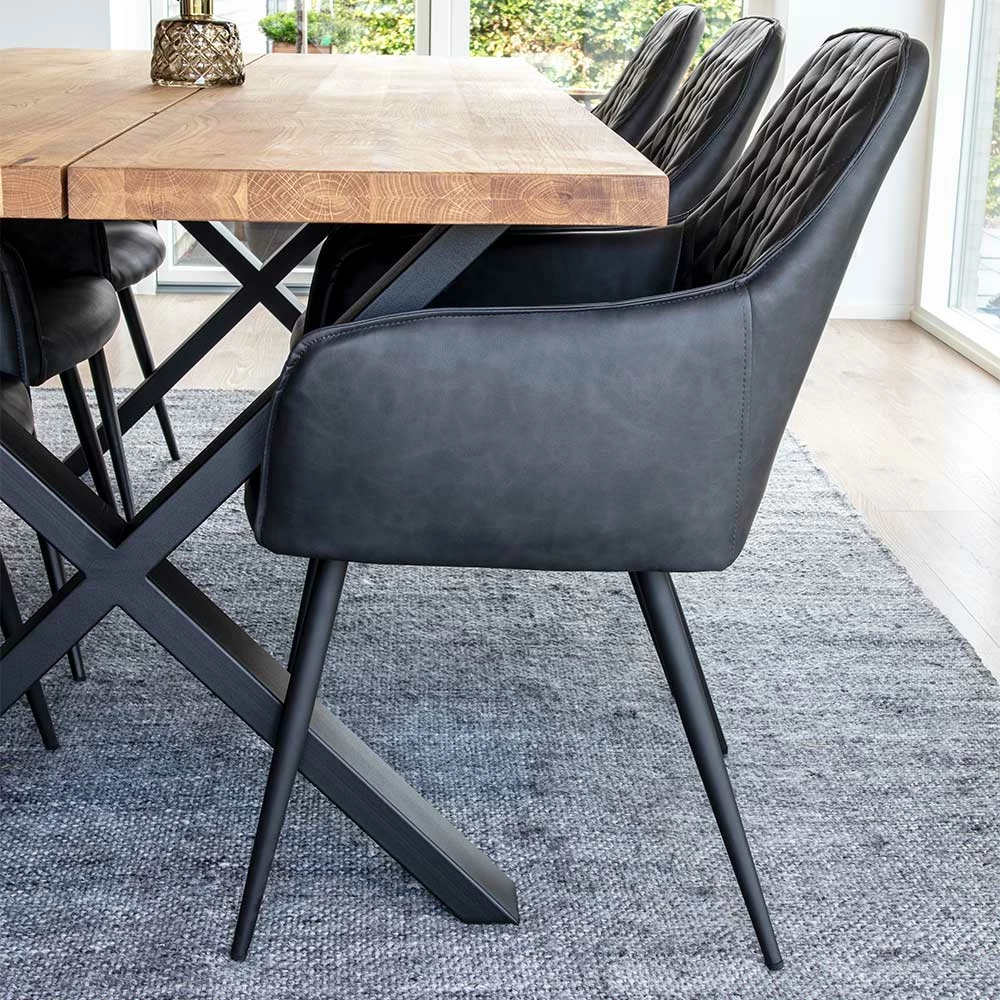 - Repräsentative Esszimmergruppe in Dunkelgrau, Schwarz und Eichefarben