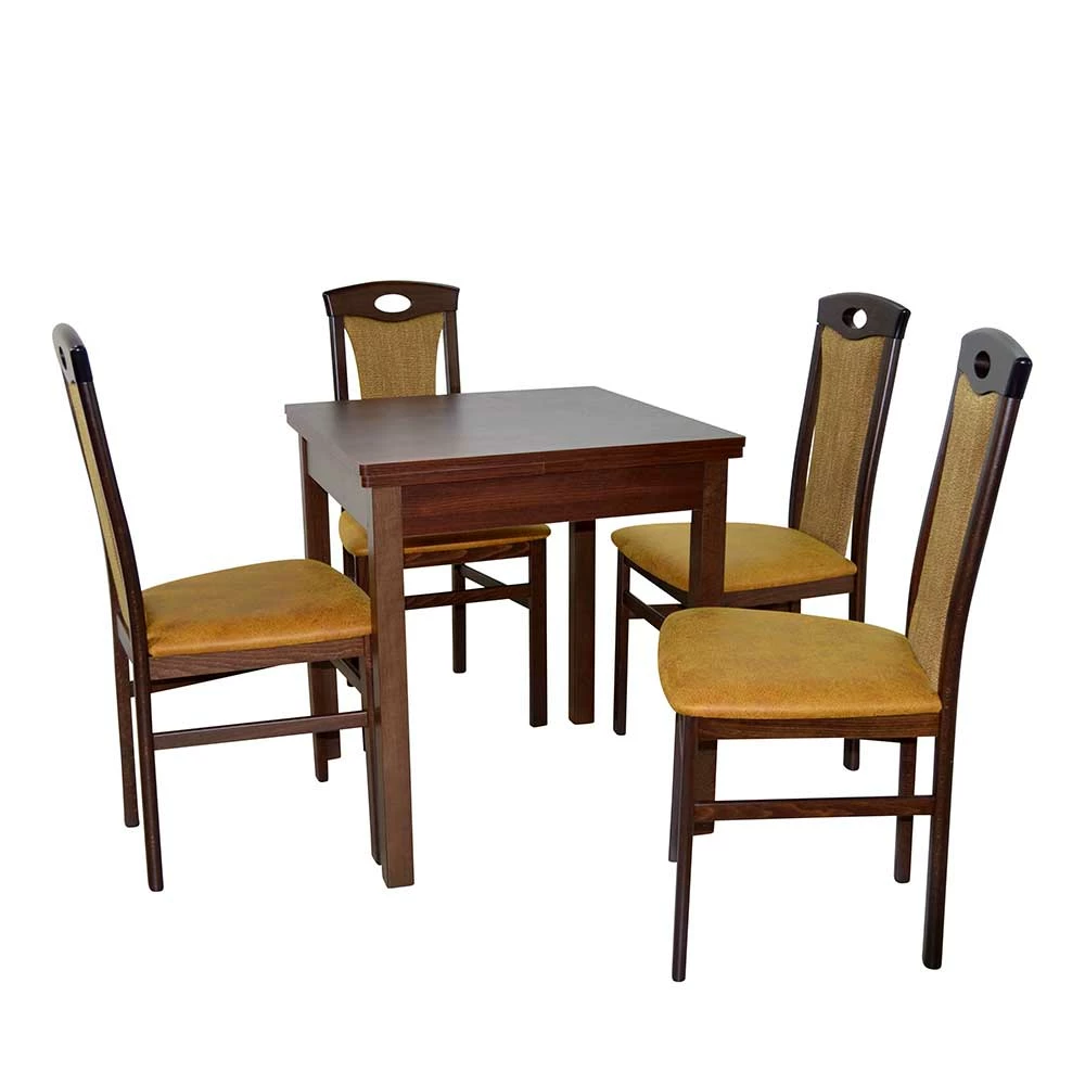 - Ansprechende Sitzgruppe in Nussbaumfarben und Ockergelb