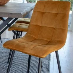 - Perfekte Esszimmergruppe in Eiche Rauchfarben, Ockergelb und Schwarz