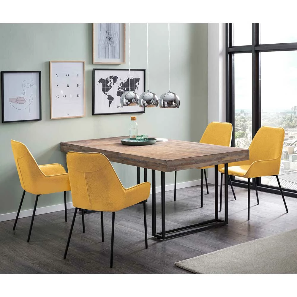 - Extravagante Esstischgruppe in Gelb, Akaziefarben und Schwarz