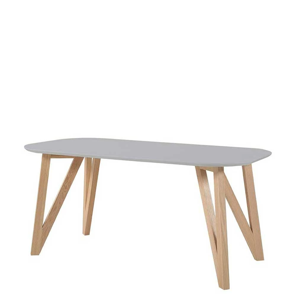 - Leicht schräg gestellte Vierfußgestelle aus geöltem, massivem Holz