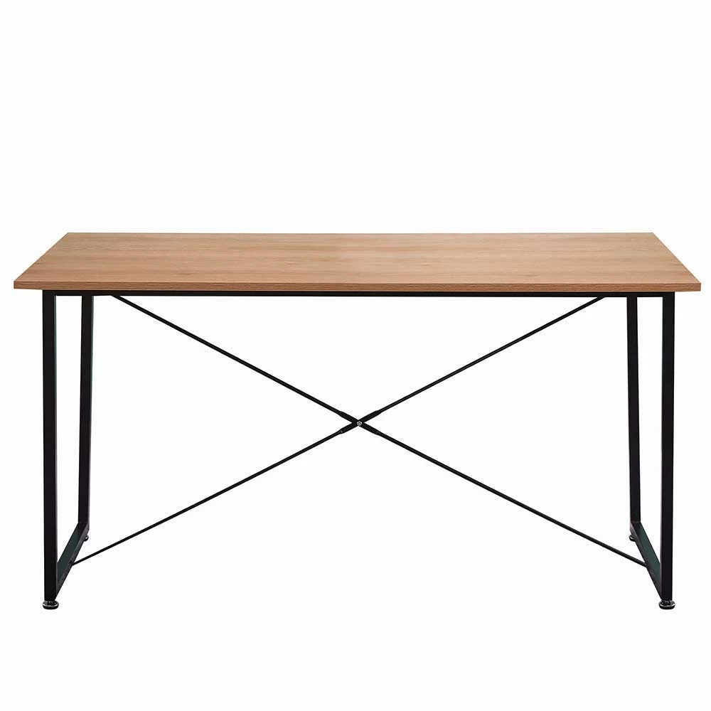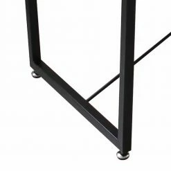 - Schwarz pulverbeschichtetes Metallbügelgestell mit gekreuzter Verstrebung und Bodenschonern