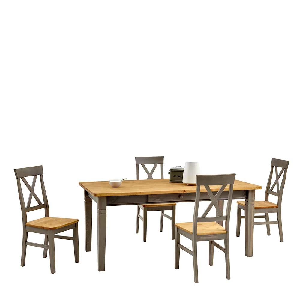 - Gemütliche Essgruppe in Grau und Kiefer laugenfarbig