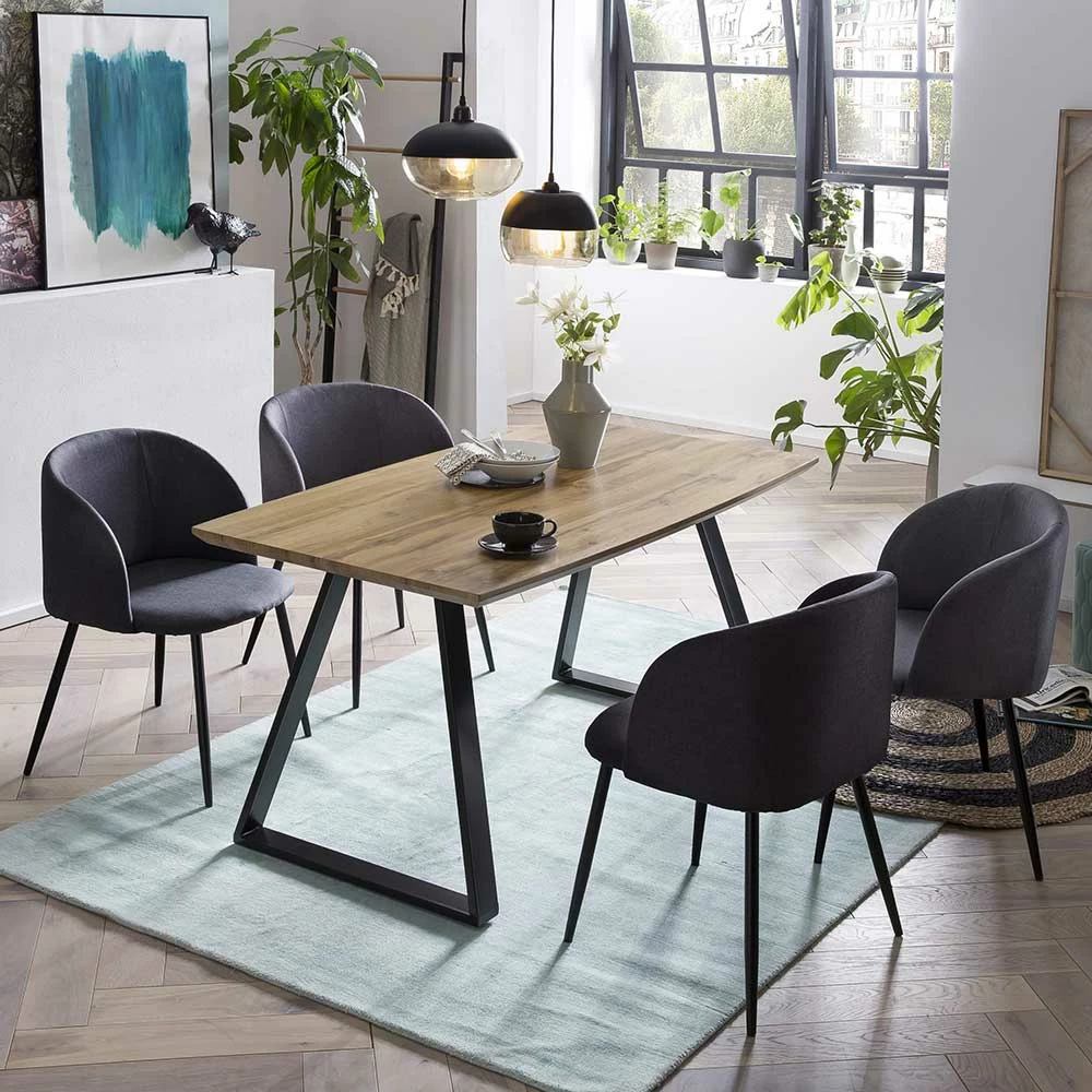 - Topaktuelle Essgruppe in Eichefarben, Hell- und Dunkelgrau sowie Schwarz