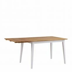 - Der Tisch ist um 45 cm verlängerbar, indem man eine mit Scharnieren montierte Platte hochklappt