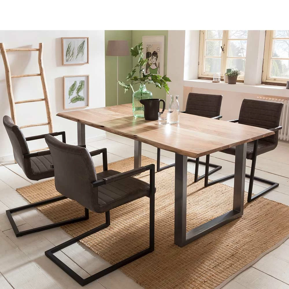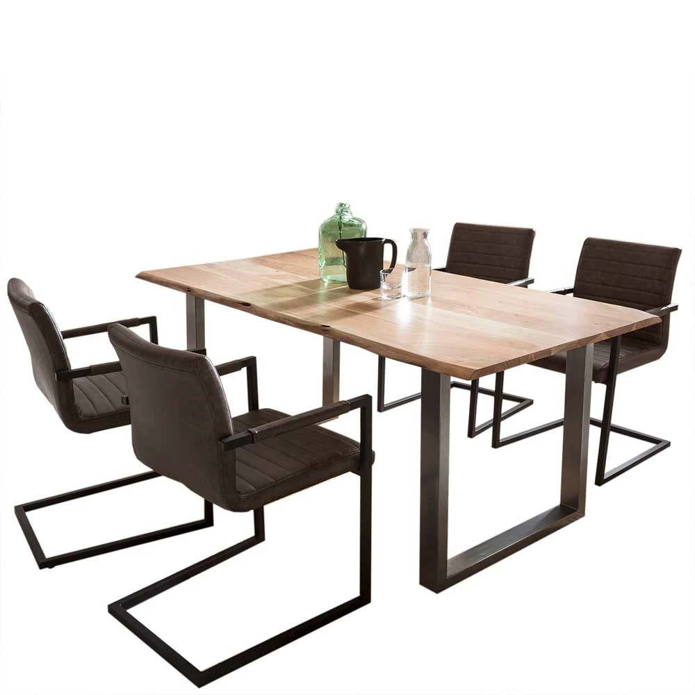 - Stilvolle Essgruppe in Dunkelbraun, Schwarz, Akazie- und Silberfarben