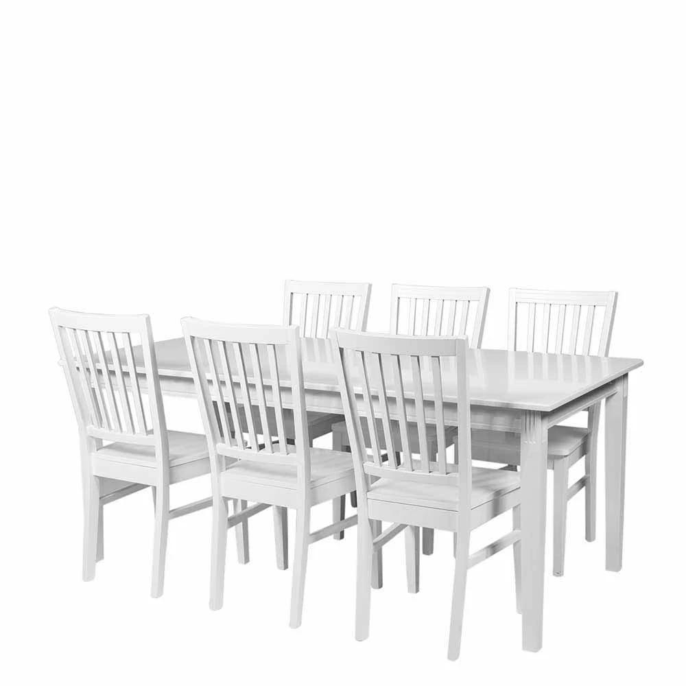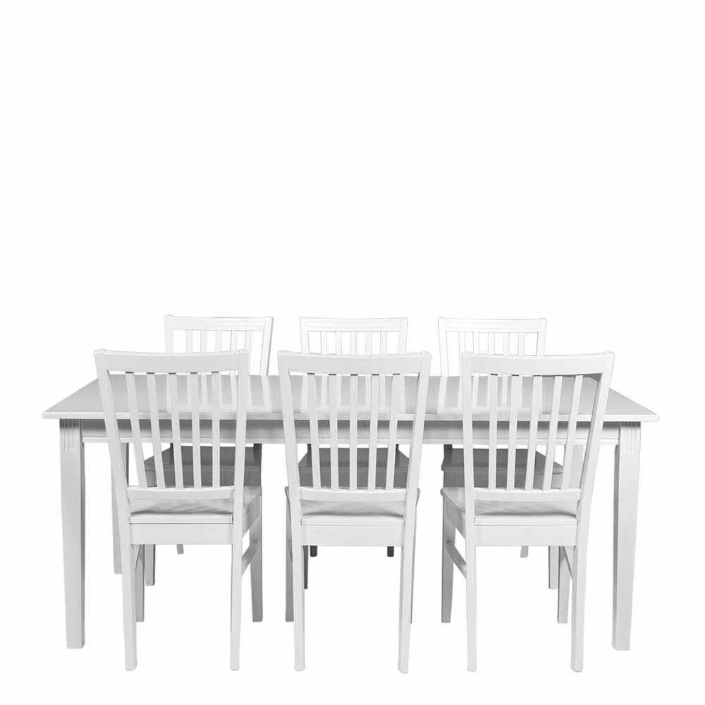 - Aus einem Esstisch und sechs Stühlen bestehend