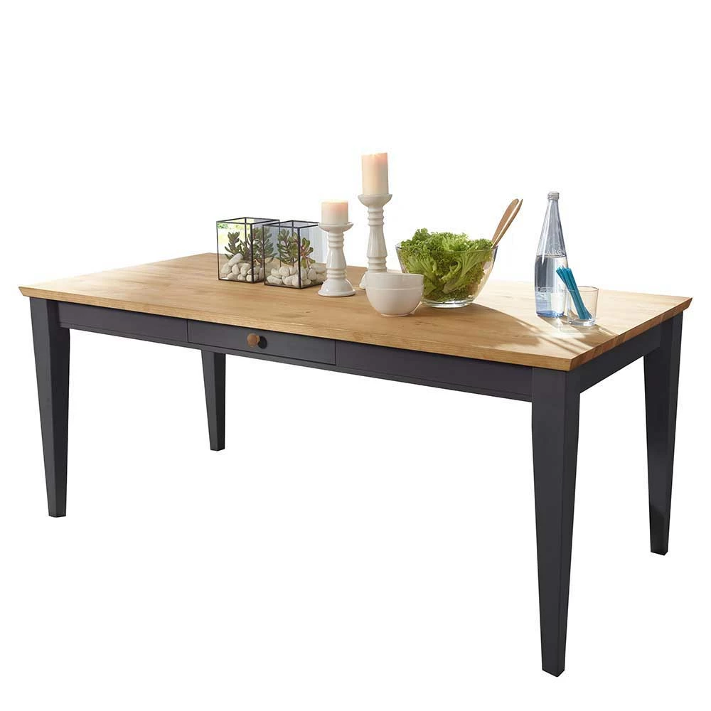 - Ländlich charmante Essgruppe in Grau und Eichefarben
