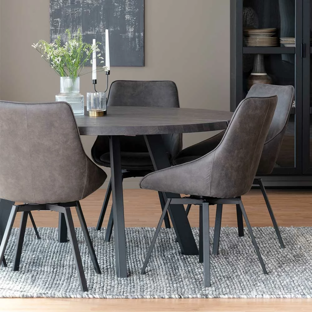 - Erstklassige Sitzgruppe in dunkler Eiche, Grau und Schwarz