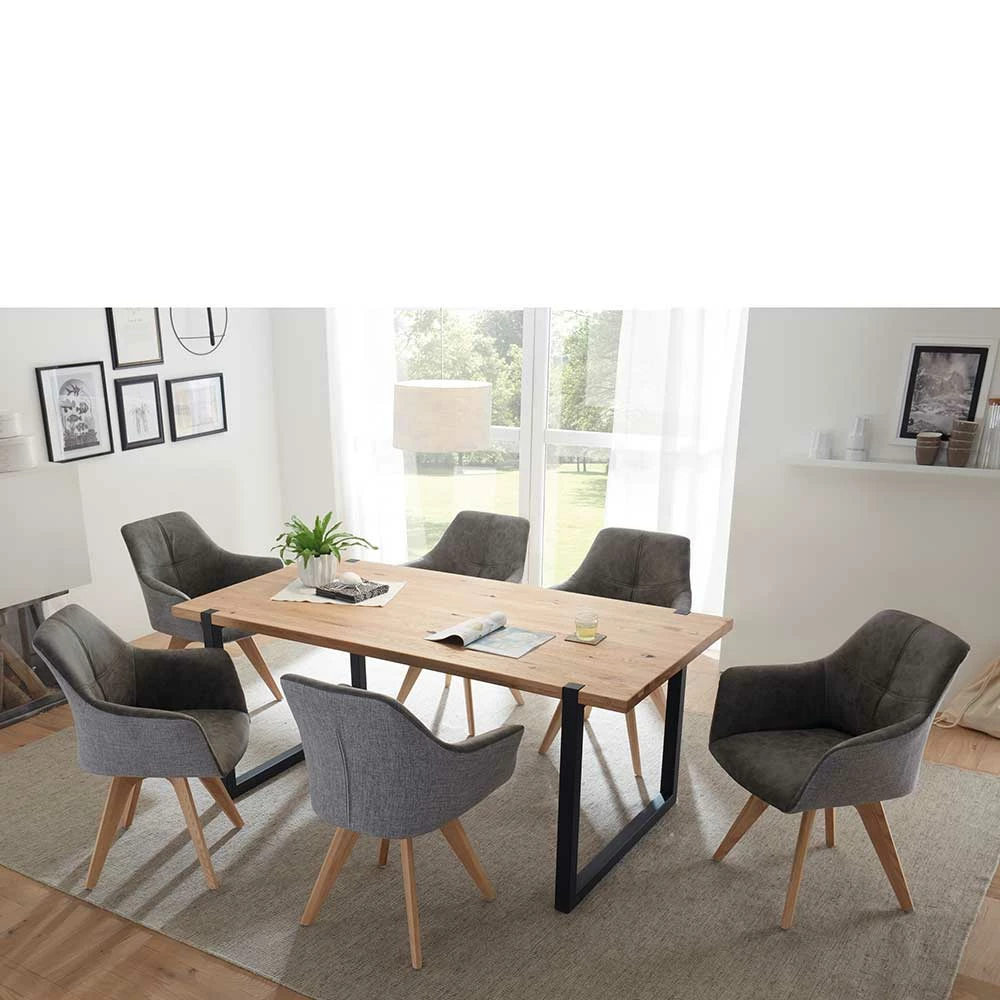 - Stylische Essgruppe in Eichefarben, Schwarz und Grau