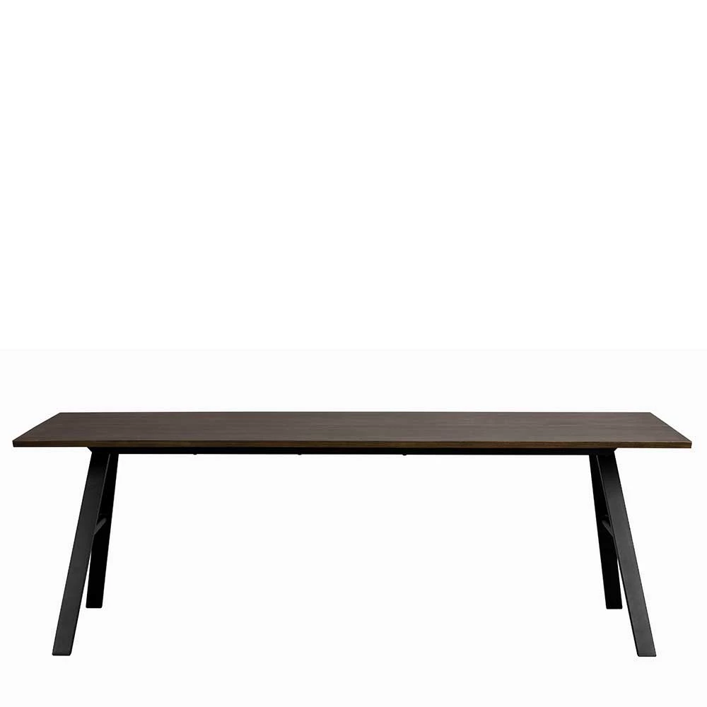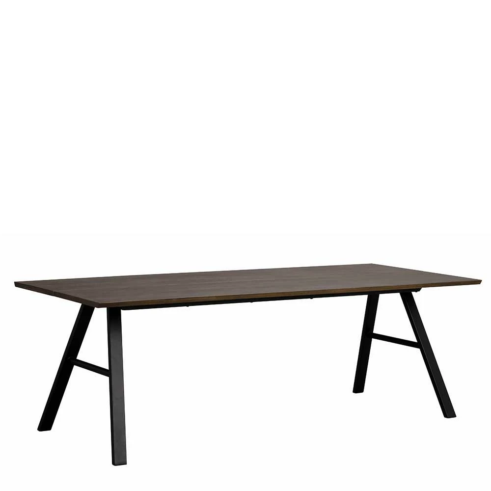 - Spanplatte echtholzfurniert und dunkel lackiert, Metall schwarz pulverbeschichtet
