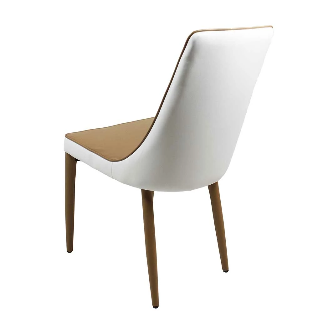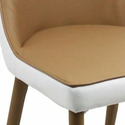 - Sitzfläche in Kunstleder Hellbraun, rückseitig in Weiß bezogen, umlaufender Keder