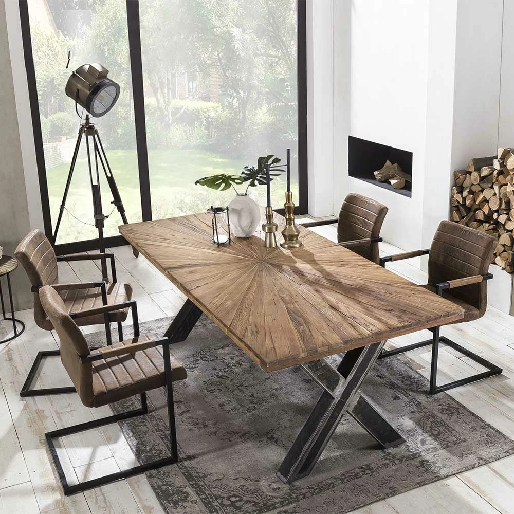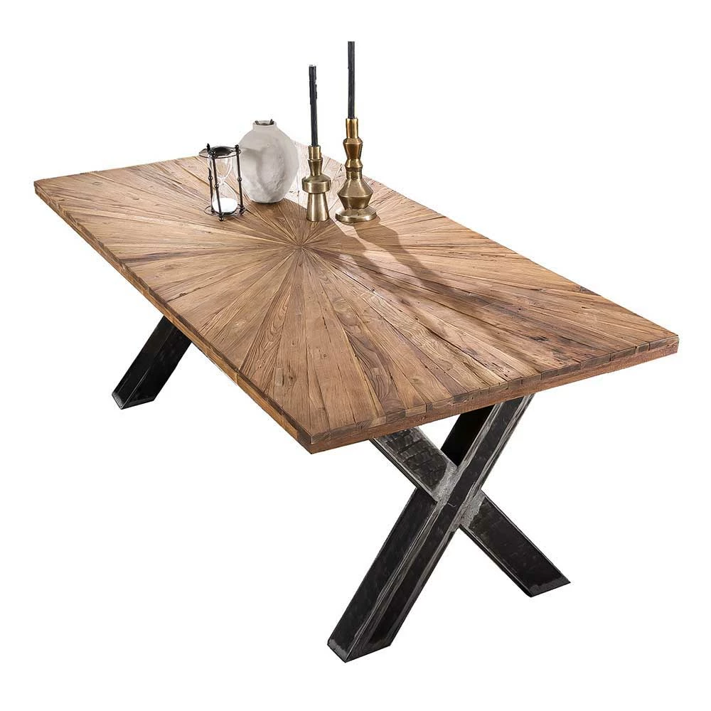 - Stabiles X-Fußgestell aus mattem Roheisen im Used Look
